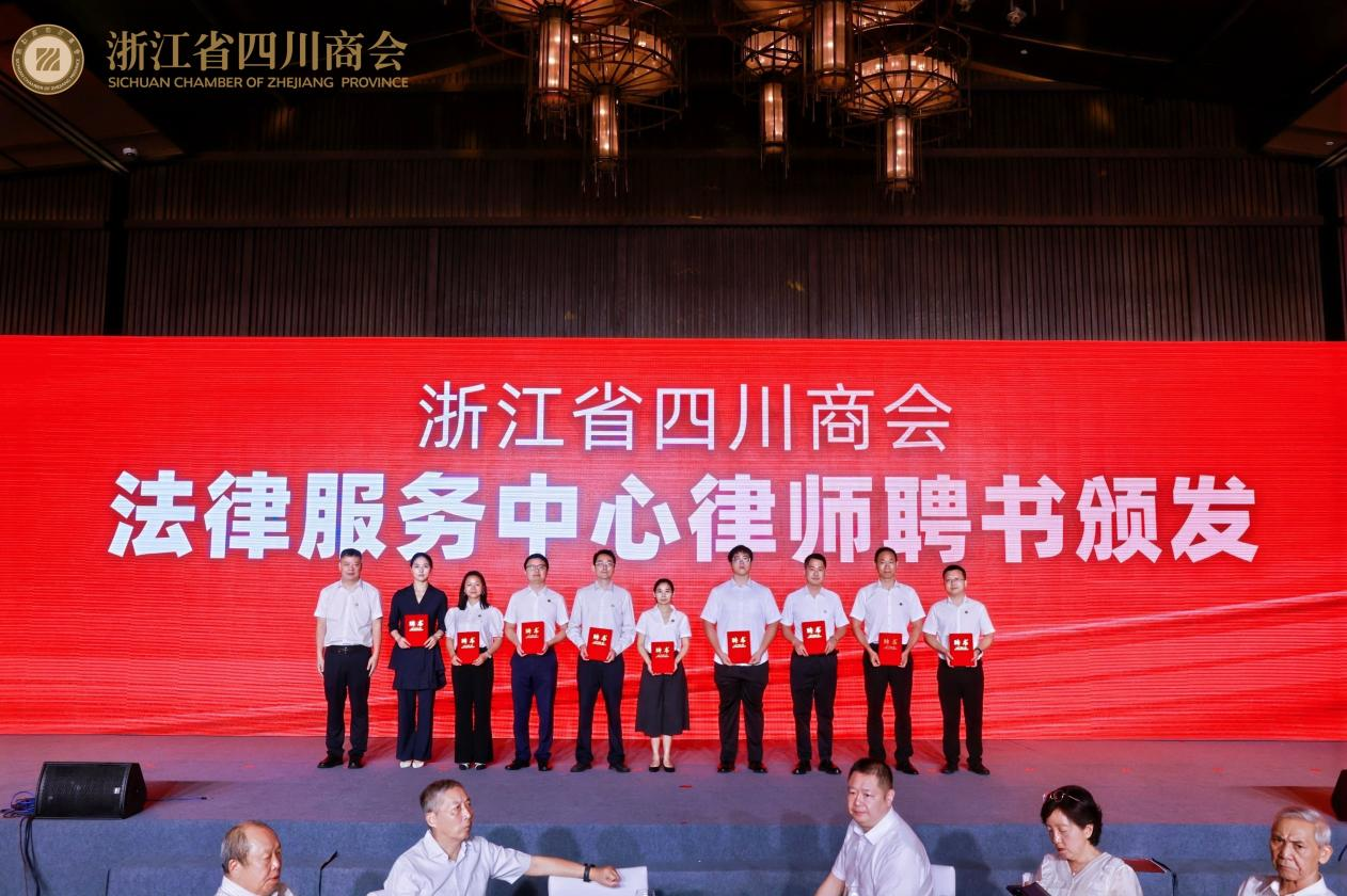 浙江省四川商会会长、朗佑控股董事长、朗佑堂创始人何勇为商会法律服务中心律师颁发聘书
