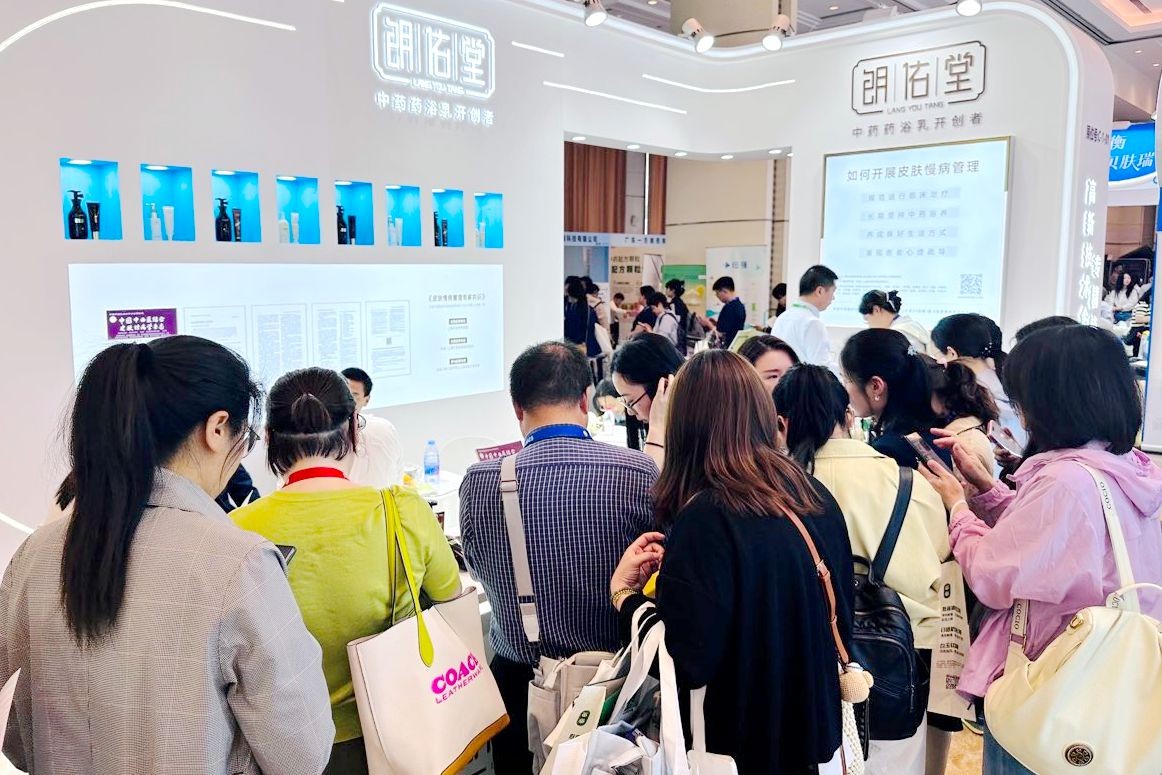 本届年会聚焦中西医结合皮肤科的最新成果和进展,重点探讨皮肤科疑难疾病的诊断与治疗策略,同时展示皮肤科实验和临床研究的最新进展。作为皮肤慢病管理倡导者,中药浴养理念提出者,中药药浴乳开创者,朗佑堂携沐发舒(除脂祛屑养发弱酸药浴乳)、沐圣舒(皮肤屏障修复弱酸药浴乳)、沐童舒(小儿皮肤浴养弱酸药浴乳)、沐颜舒(面部皮肤浴养弱酸药浴乳)等系列中药药浴乳亮相会场。李斌教授、史玉玲教授、李欣教授等多位权威专家亲临朗佑堂展位,就皮肤慢病管理的四个维度(如何规范进行临床治疗、长期坚持中药浴养、养成良好生活方式、重视患者心理疏导)进行了深入探讨。