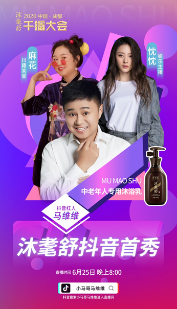 今晚的直播主推产品为沐耄舒,是中老年人专用药浴乳,其中的“耄(mào)”字,取意为“耄年之乐”,指中老年人幸福,让中老年人通过日常沐浴改善皮肤微生态,有效解决皮肤干痒问题,全面提升生活品质。