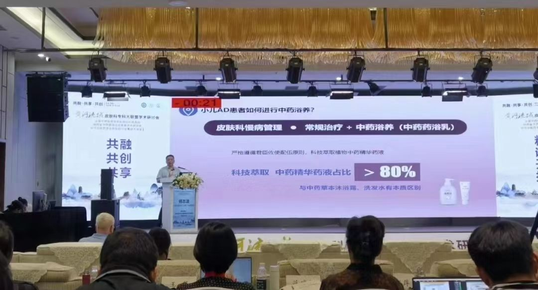 开幕式结束后,大会邀请省内外知名皮肤科专家进行主题讲座。专家们精彩授课赢得了参会人员的阵阵掌声,与会人员纷纷表示此行受益匪浅、获益良多。朗佑堂作为皮肤科慢病管理的倡导者,中药浴养理念的提出者,中药药浴乳品类的开创者,全球第一瓶中药药浴乳的缔造者,也受邀参加了本次大会,向临床专家们传播中药浴养文化,推广中药浴养理念,展示和体验中药药浴乳。其中,皮肤科慢病管理原则:三分靠治、七分靠养;皮肤科慢病管理方案:临床治疗+中药浴养,更是受到与会专家们的广泛讨论及高度认同。