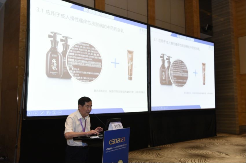 开幕式结束后,专题讲座正式拉开帷幕。在专题现场,中华中医药学会皮肤科分会副主任委员李铁男教授专题解析《中药浴养在慢性瘙痒性皮肤病的应用》,向参会人员深入解读了皮肤科慢病管理原则:三分靠治、七分靠养;皮肤科慢病管理方案:临床治疗+中药浴养。