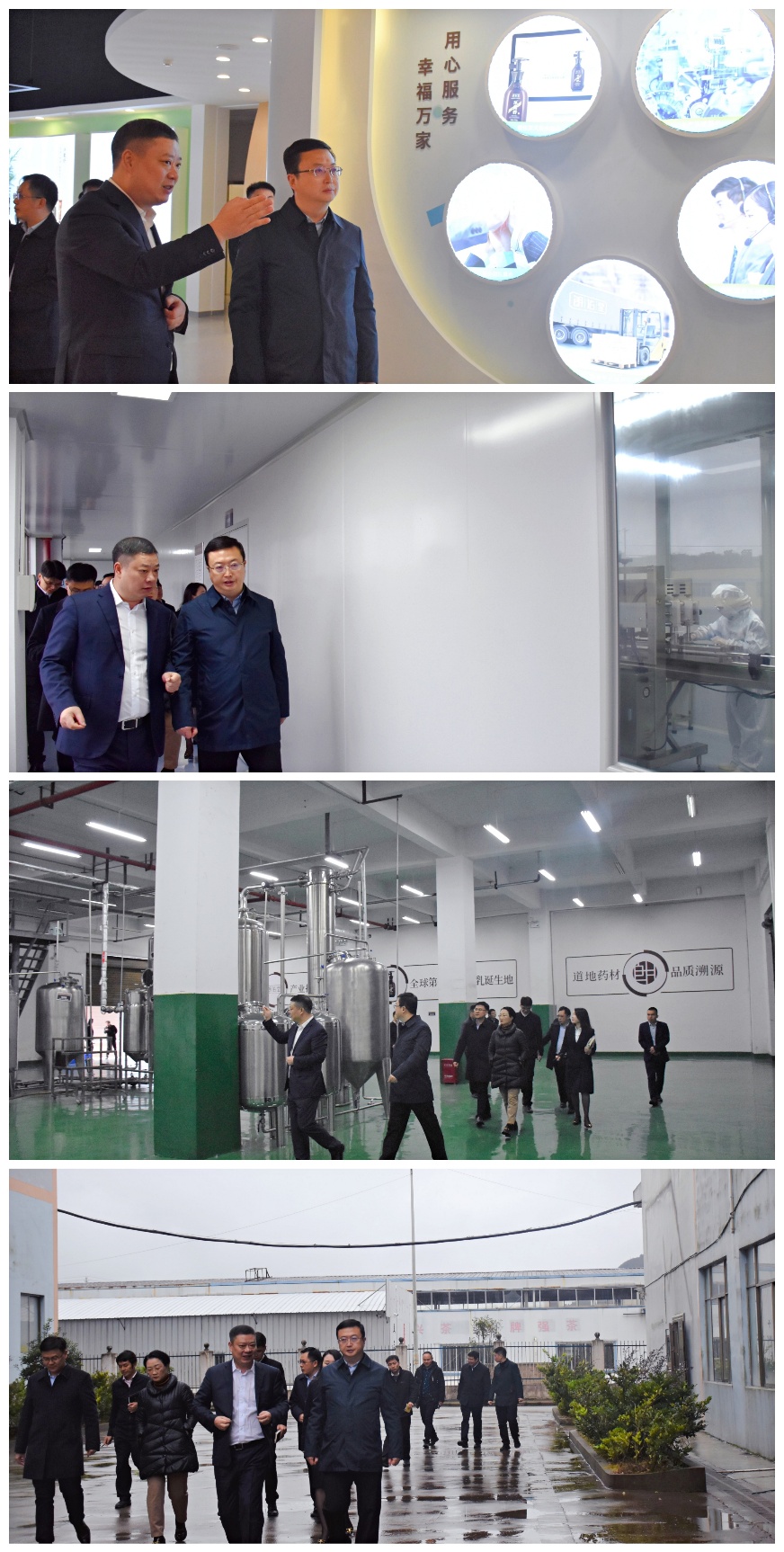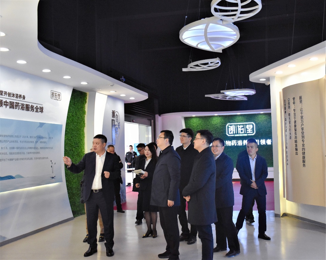 罗强书记一行参观了朗佑堂制药的中药浴养文化展厅和中药药浴乳GMP生产车间,并对朗佑堂使用道地药材情况、解决当地就业情况,以及企业的研发、生产、销售等情况进行了详细调研。