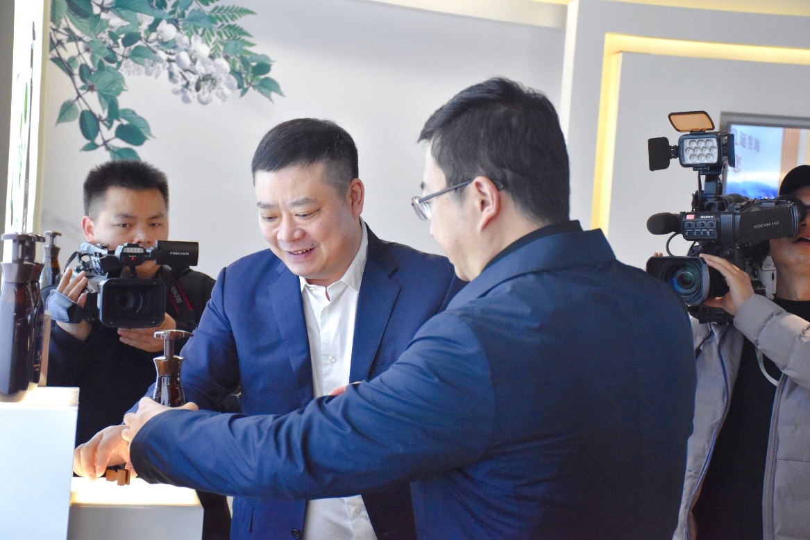 罗强书记一行对中药药浴乳这个创新品类进行调研时,何勇董事长围绕中药药浴乳的品类特点和浴养价值进行了汇报:朗佑堂研制的弱酸性中药药浴乳均由植物中药萃取的精华药液组成,具有功效确切、安全性高、使用便捷的特点;既能清洁皮肤,又能养护皮肤,还能避免不当洗浴对皮肤造成伤害;脱发人群、皮肤疾患人群用沐发舒、沐圣舒进行浴养,既能提升有效率,又能降低复发率,还能改善生活品质。