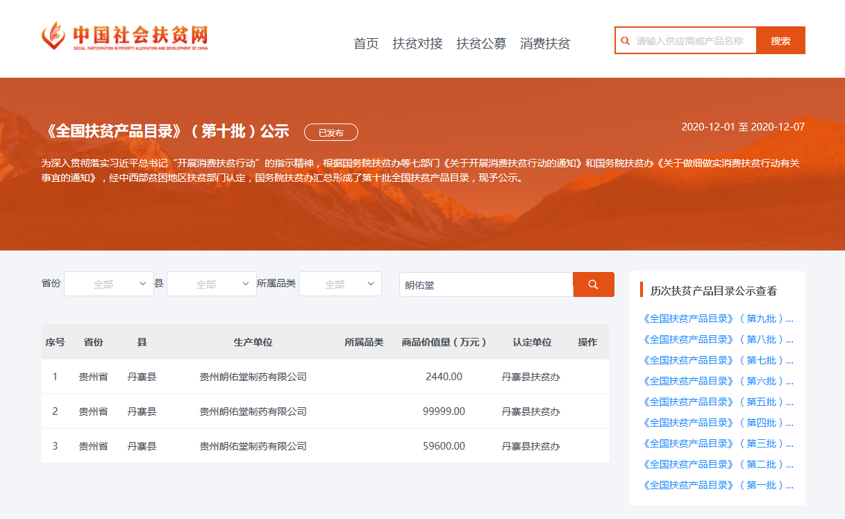 2020年5月,药浴乳在云上丹寨朗佑堂诞生,现药浴乳系列产品已被国务院列入《全国扶贫产品目录》。