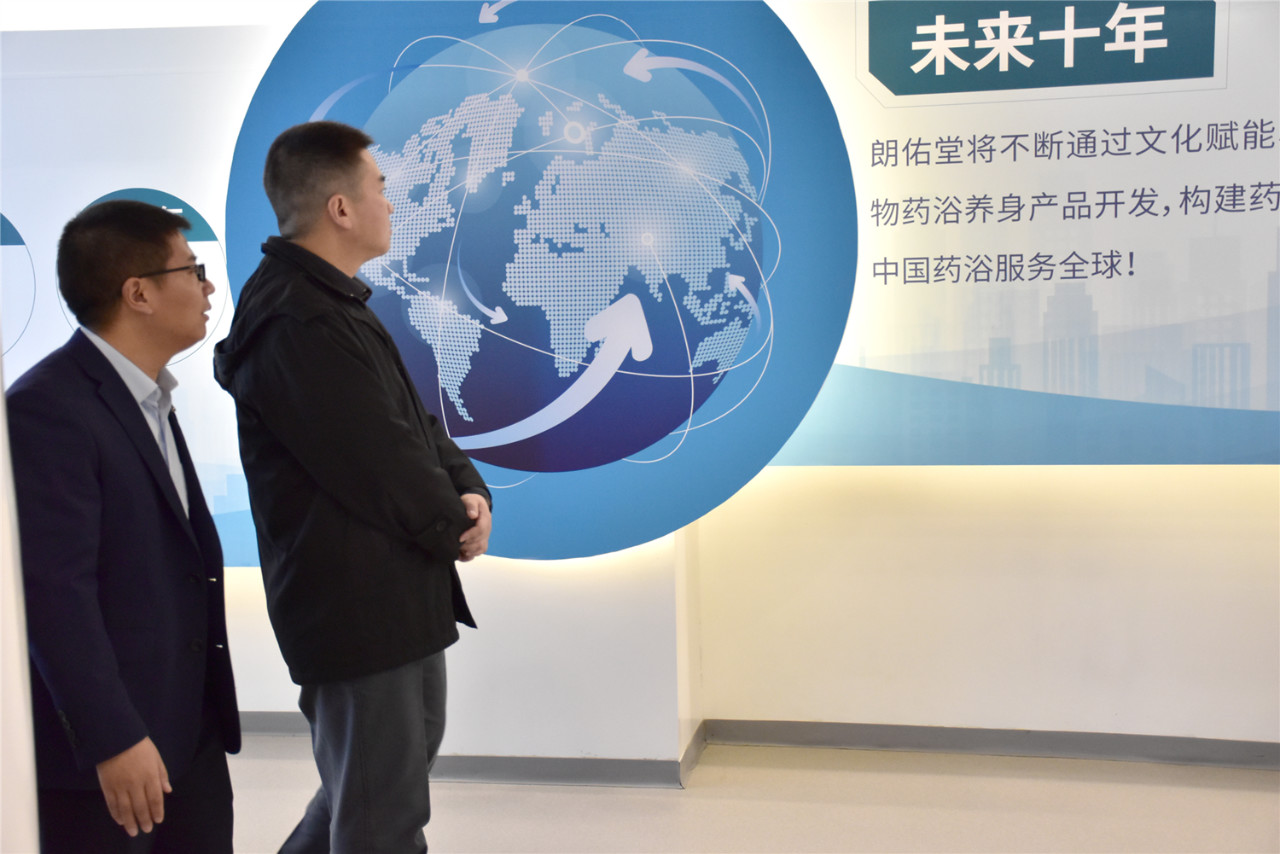 徐县长一行首先参观了朗佑堂企业文化展厅,对朗佑堂的企业文化、产品定位、发展规划等进行了详细了解,随后对朗佑堂项目推进进展、生产设施设备、生产安全管理、办公环境、所需支持的服务等进行深入了解。