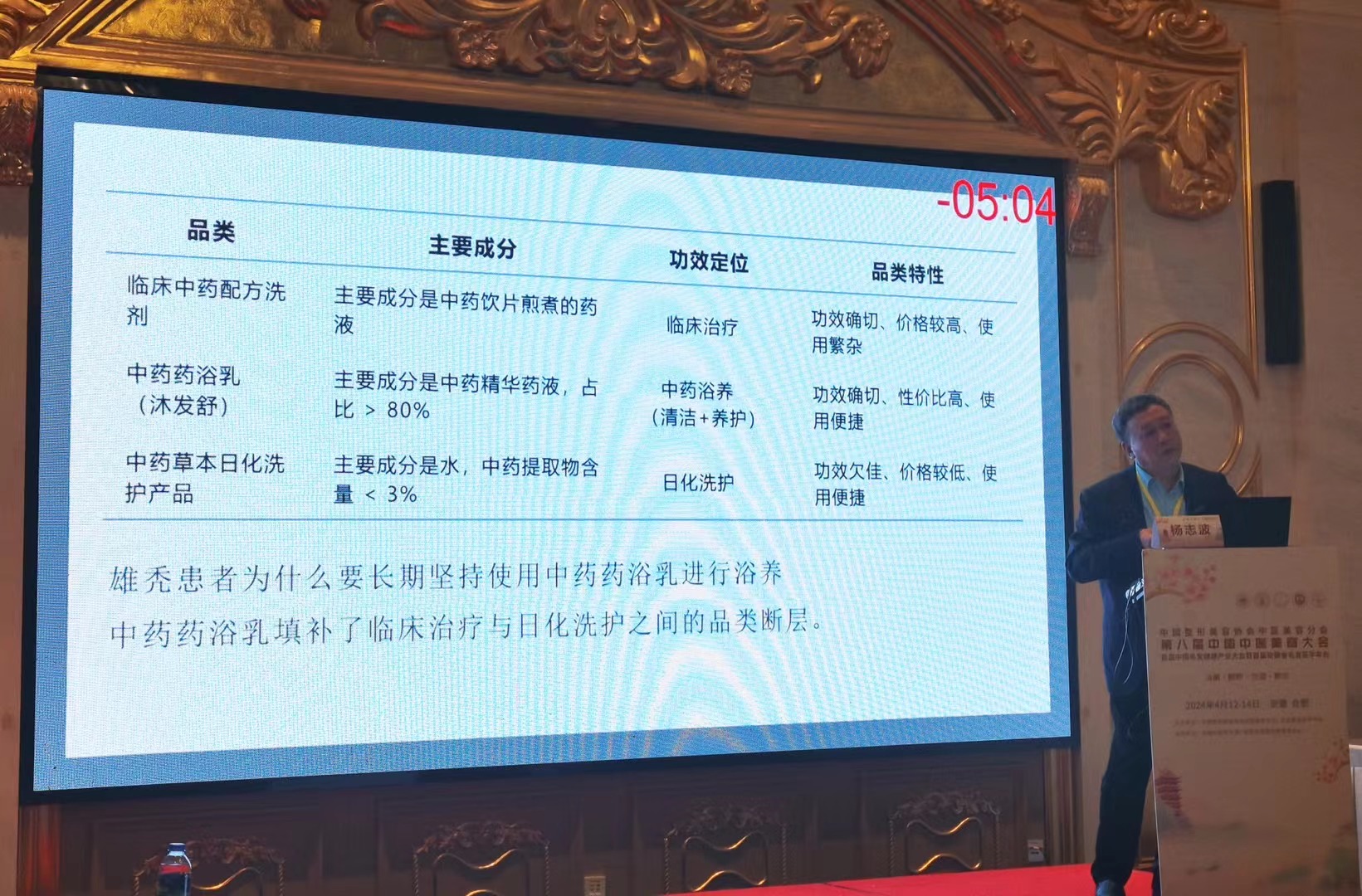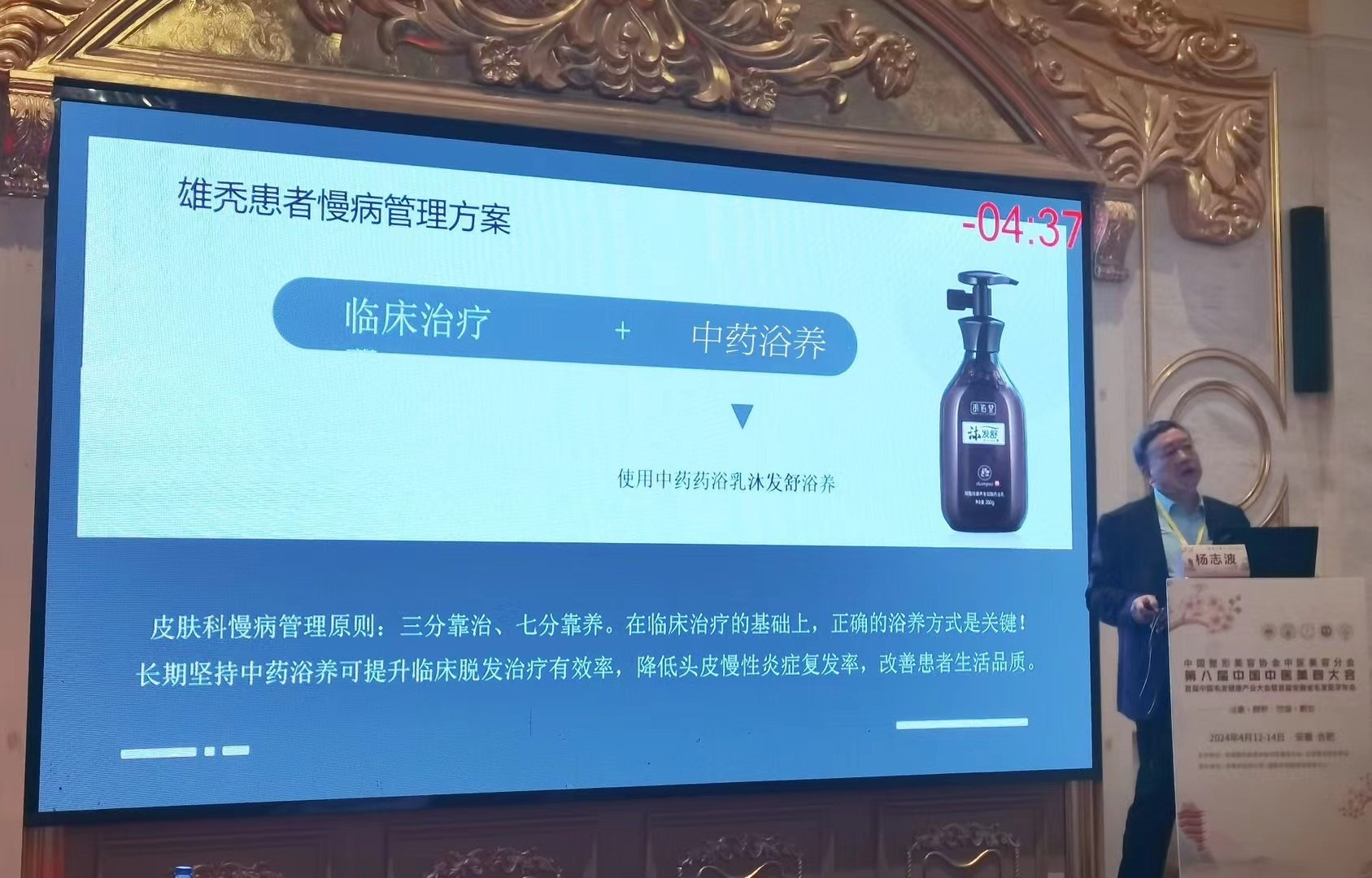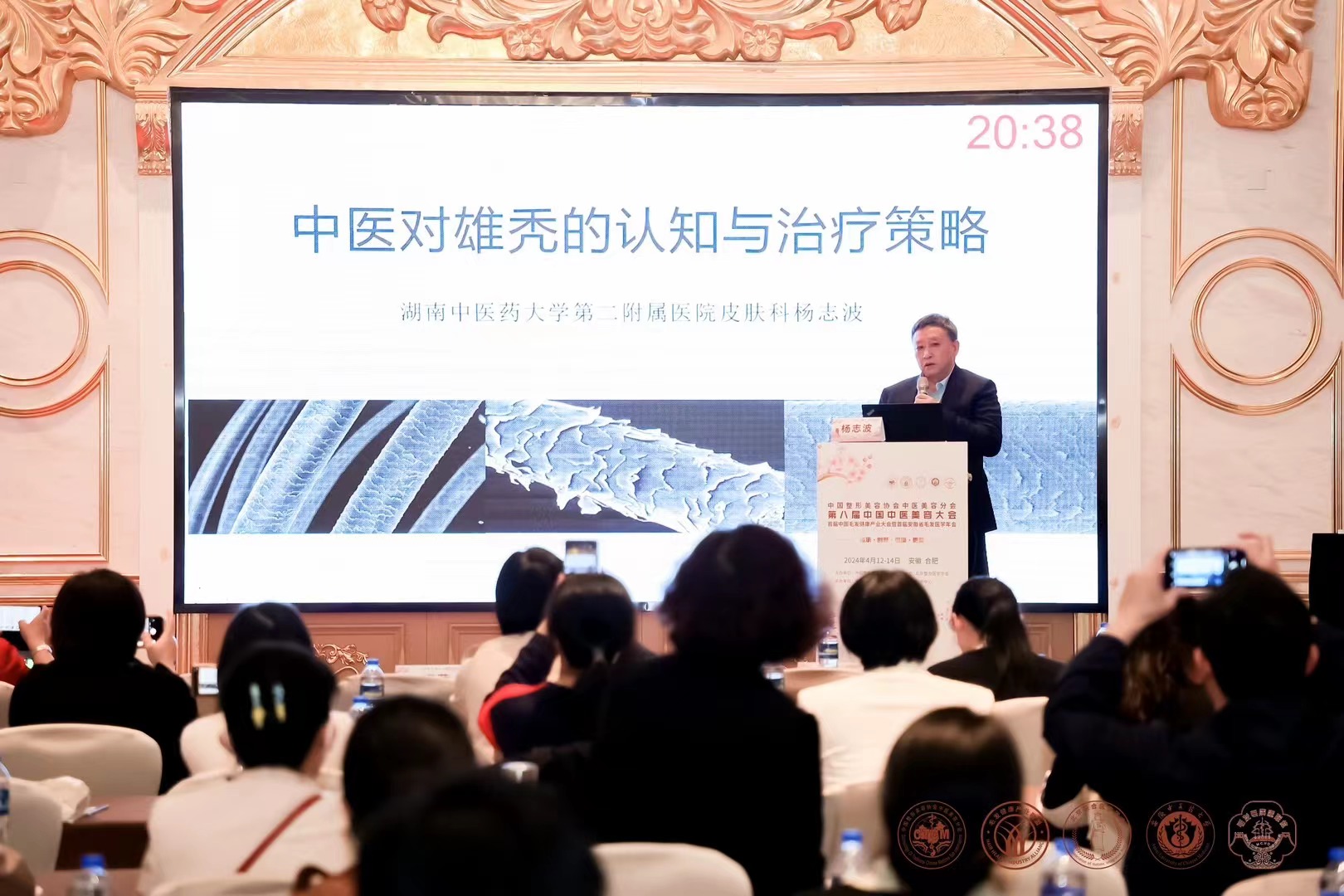 4月13日上午,由中国整形美容协会中医美容分会主办的“第八届中国中医美容大会暨 2024中国整形美容协会中医美容分会年会”在合肥隆重召开,朗佑堂制药受邀参加会议。中华中医药学会皮肤科分会名誉主委杨志波教授对“雄秃患者的慢病管理方案”进行深入解析。