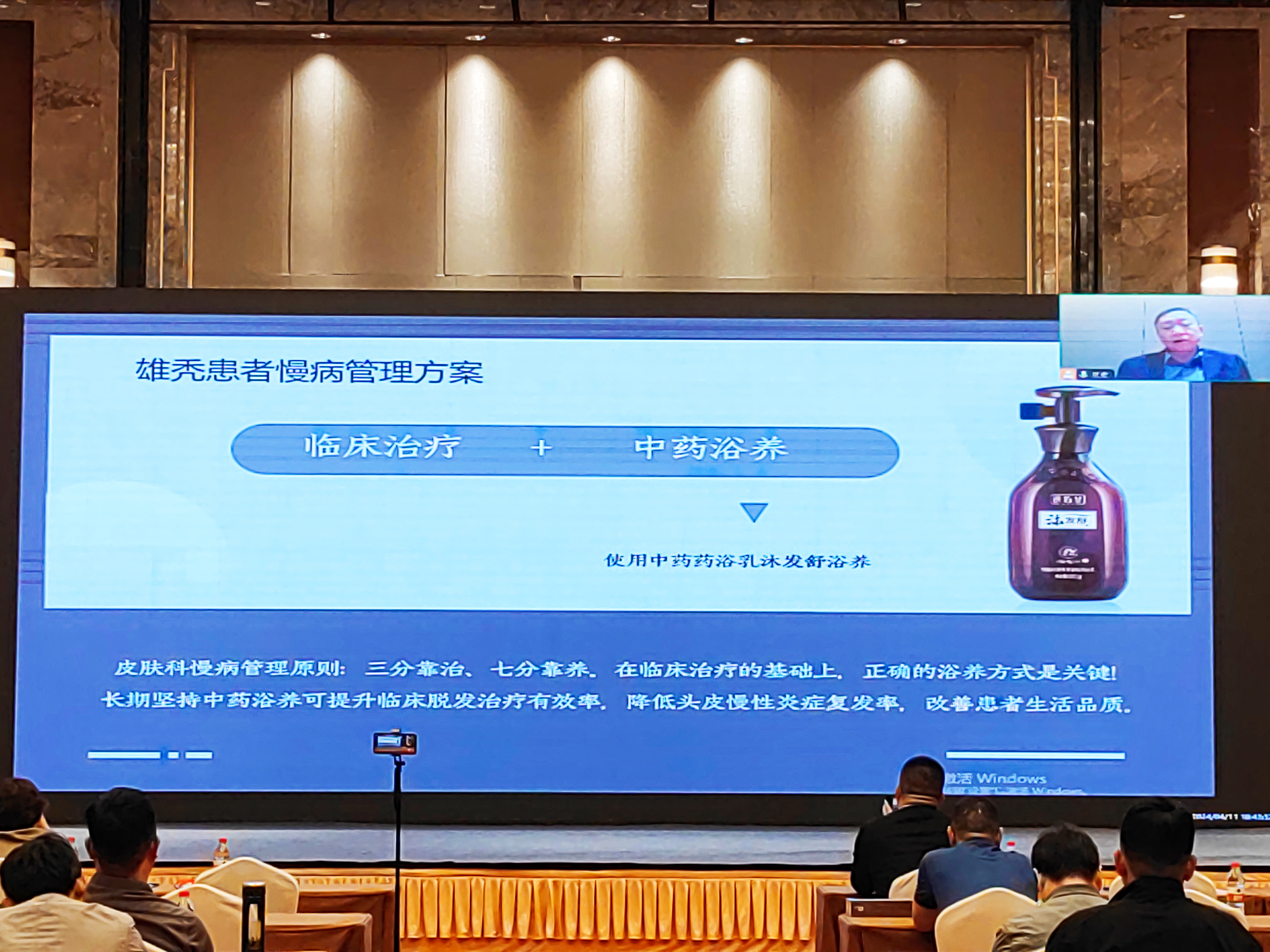 由湖北省中医药学会皮肤专业委员会主办,襄阳市中医医院承办的 “2024 年湖北省中医药学会皮肤专业委员会学术年会暨荆楚皮肤病传承与创新学习班”于 2024 年 4 月 13 日上午在湖北襄阳隆重拉开帷幕,朗佑堂制药受邀参加会议。中华中医药学会皮肤科分会名誉主委杨志波教授远程网络授课,深入解析“雄秃患者的慢病管理方案”。
