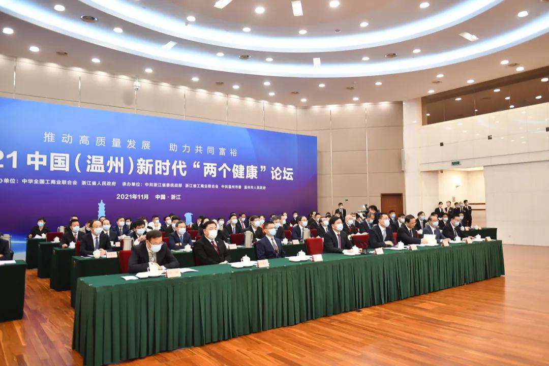 2021年11月1日上午,由全国工商联和浙江省人民政府共同举办的2021中国(温州)新时代“两个健康”论坛顺利举办。论坛以“推动高质量发展助力共同富裕”为主题,采取线上线下结合方式,设北京会场、浙江会场和温州会场,及全国各地分会场。