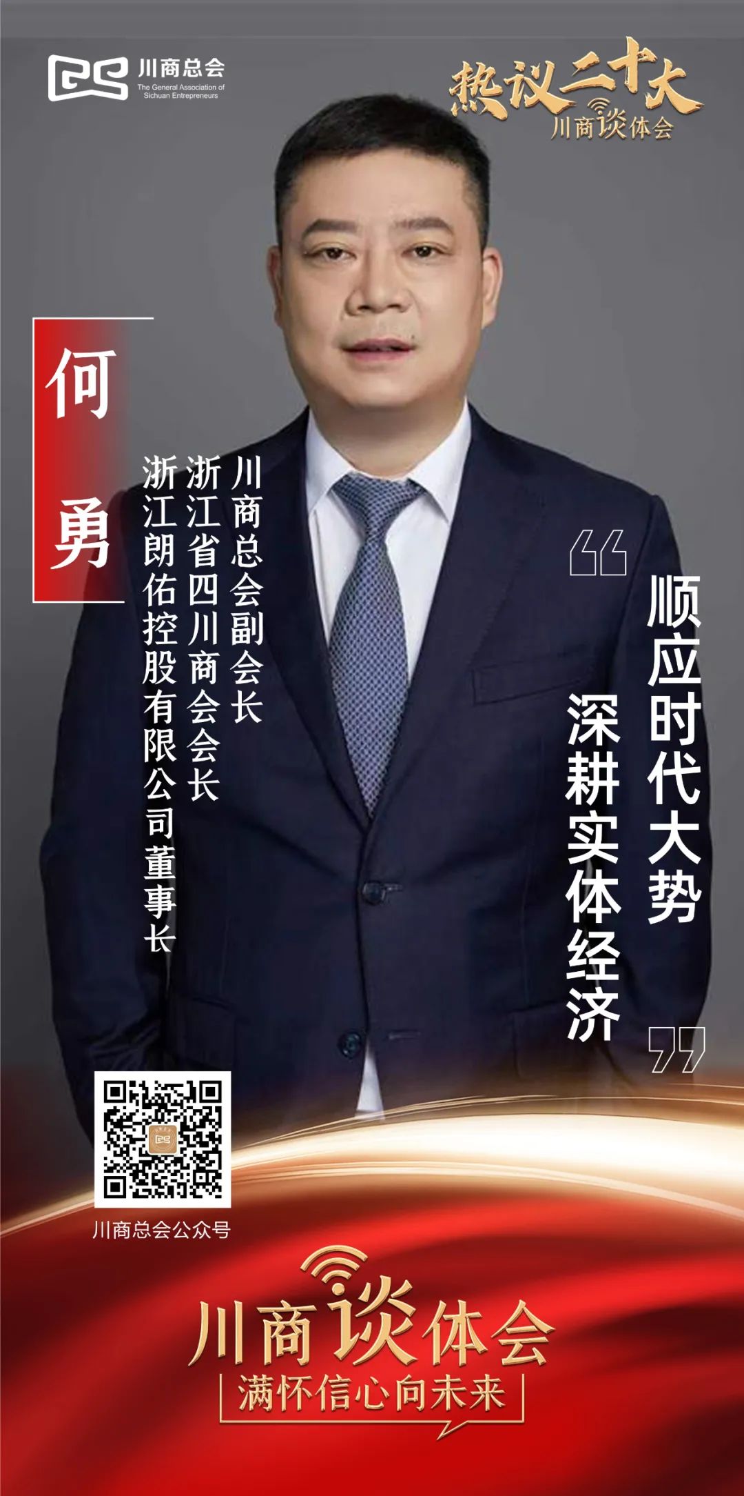 川商总会副会长、浙江省四川商会会长、浙江朗佑控股有限公司董事长、朗佑堂创始人何勇,结合二十大报告分享了学习感悟。