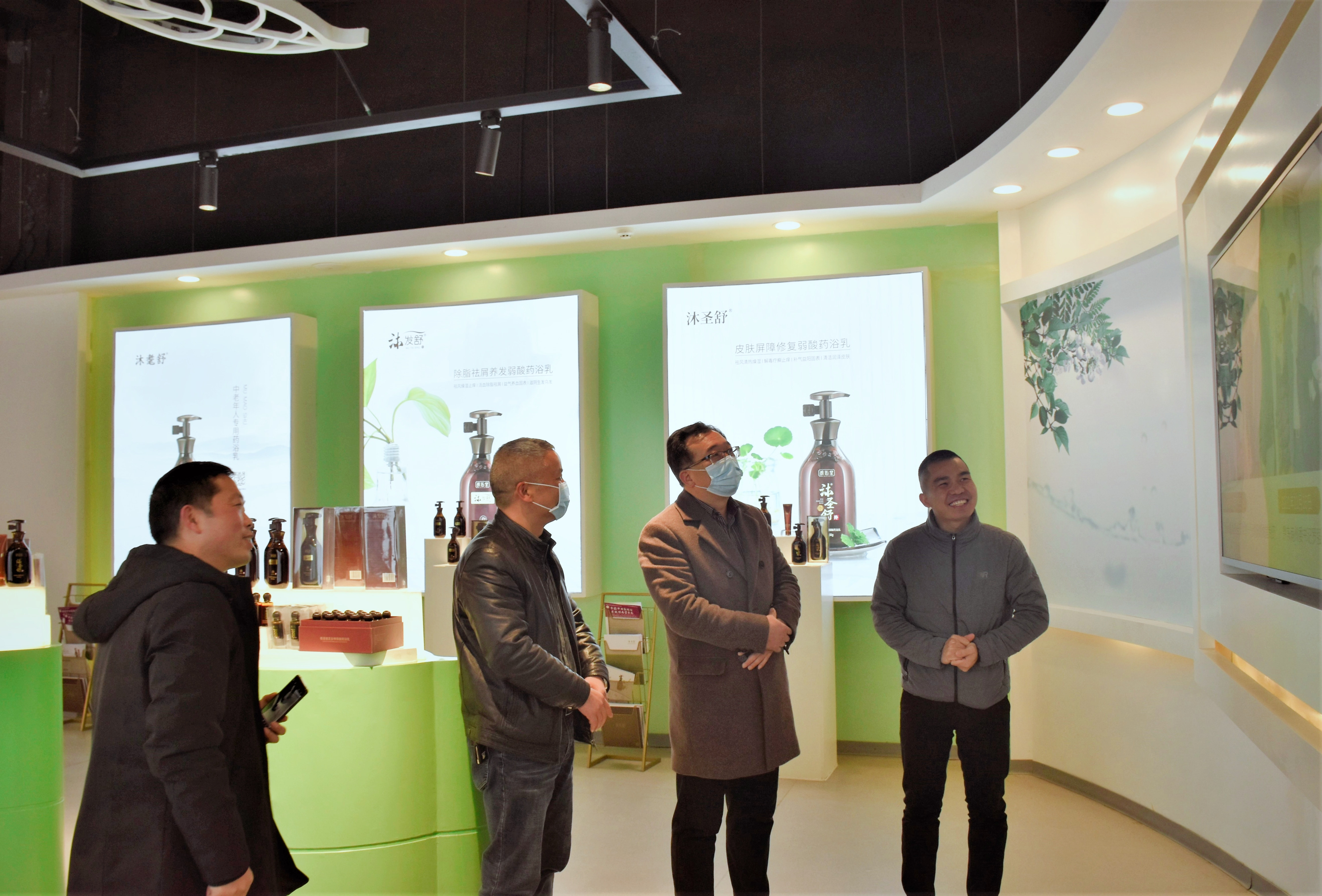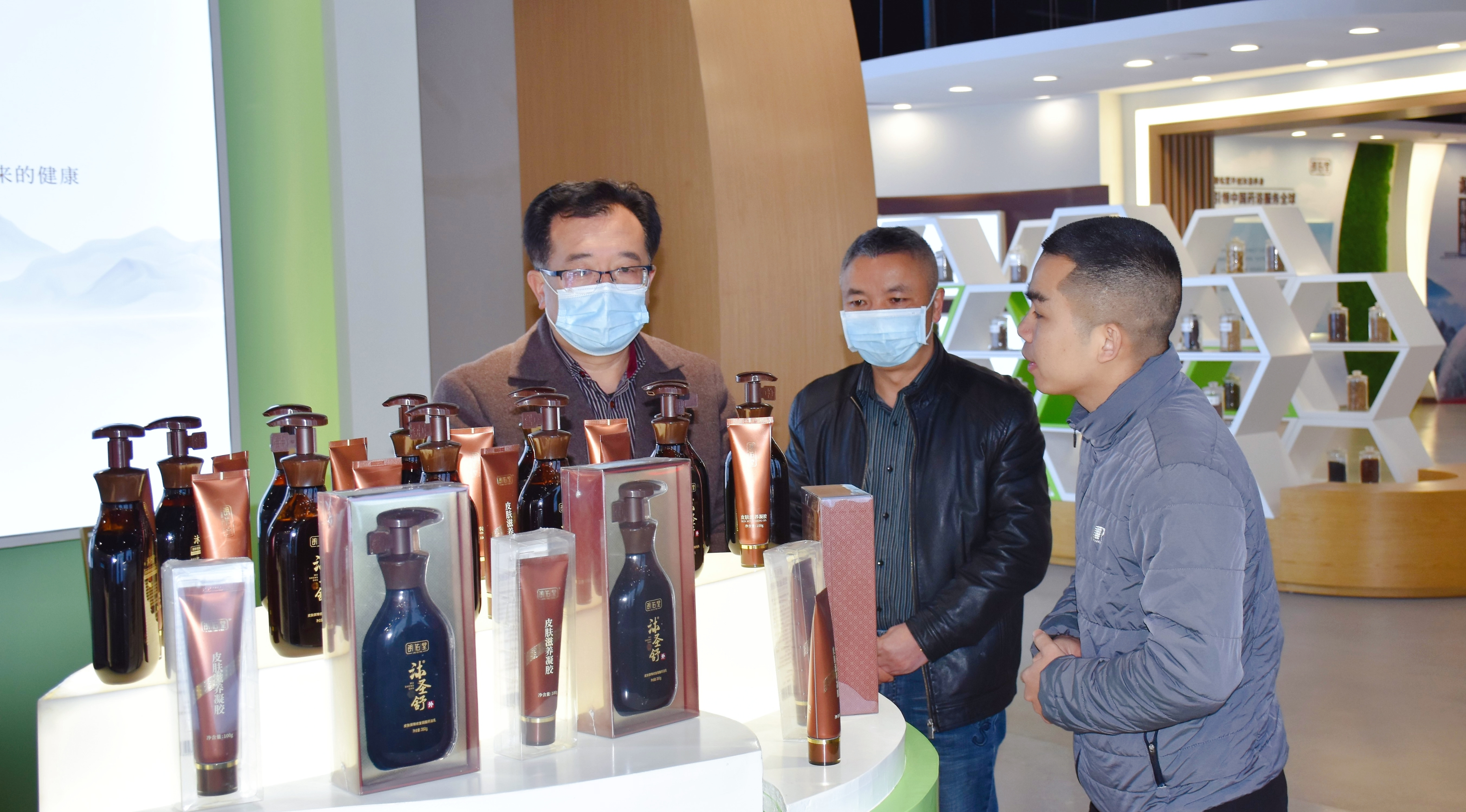 领导们重点参观了朗佑堂中药浴养文化展厅和中药药浴乳GMP生产车间,对朗佑堂的科研、生产、销售等情况进行了详细调研。