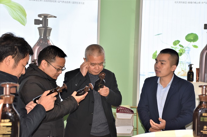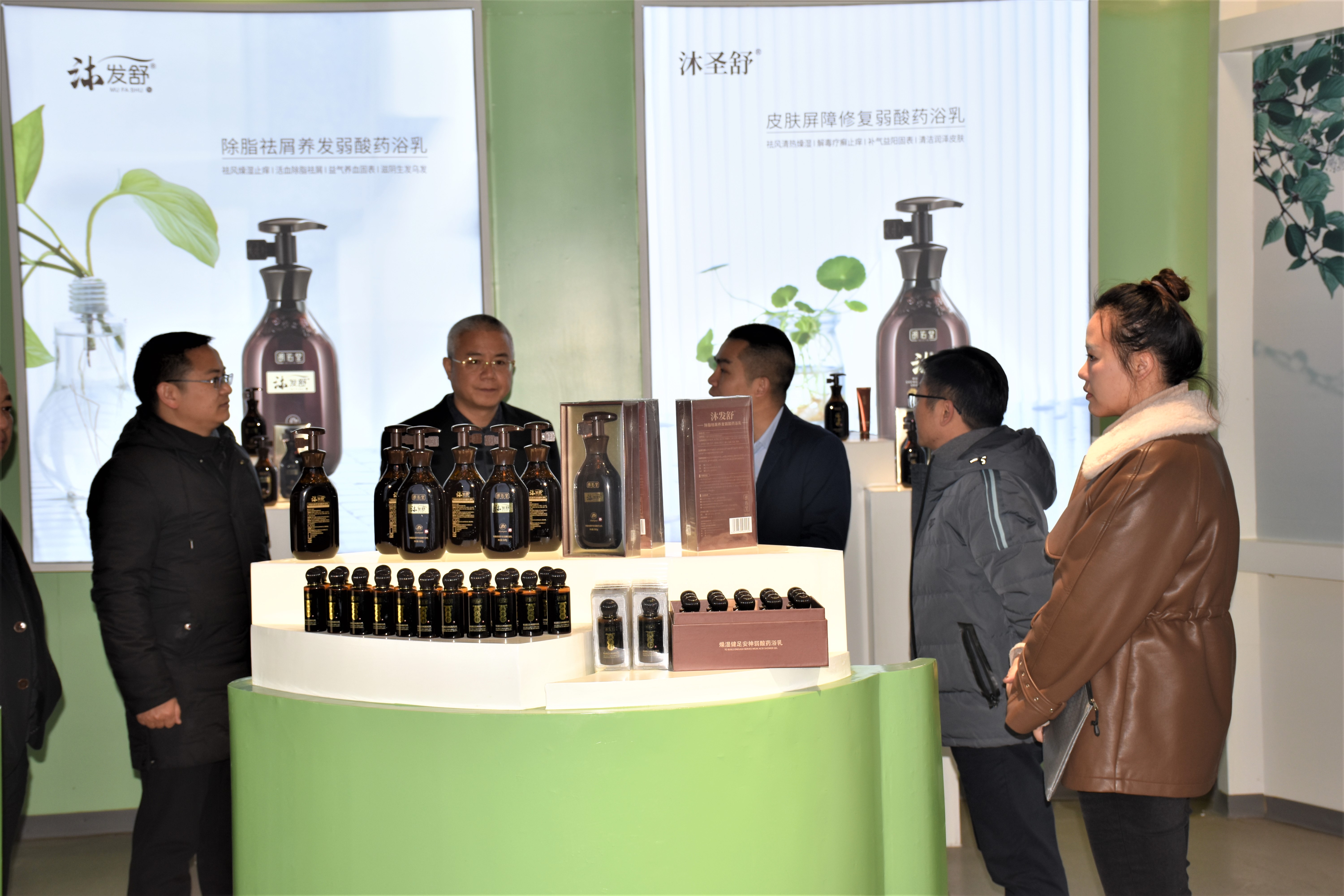 领导们参观了朗佑堂制药的中药浴养文化展厅和中药药浴乳GMP生产车间,对朗佑堂的研发、生产、销售等情况进行了详细调研。