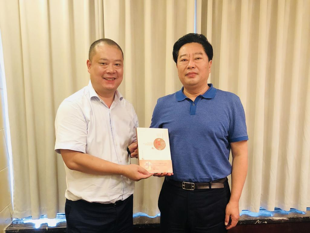 朗佑控股董事长、朗佑堂创始人何勇向 时任四川省宜宾市委书记,现任四川省委党建领导小组副组长刘中伯 赠予孝行大道系列丛书《幸福从孝开始》