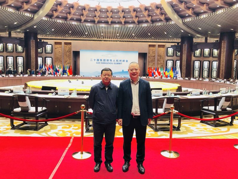 党委副书记、副董事长刘龙章与朗佑控股董事长、朗佑堂创始人何勇合影留念