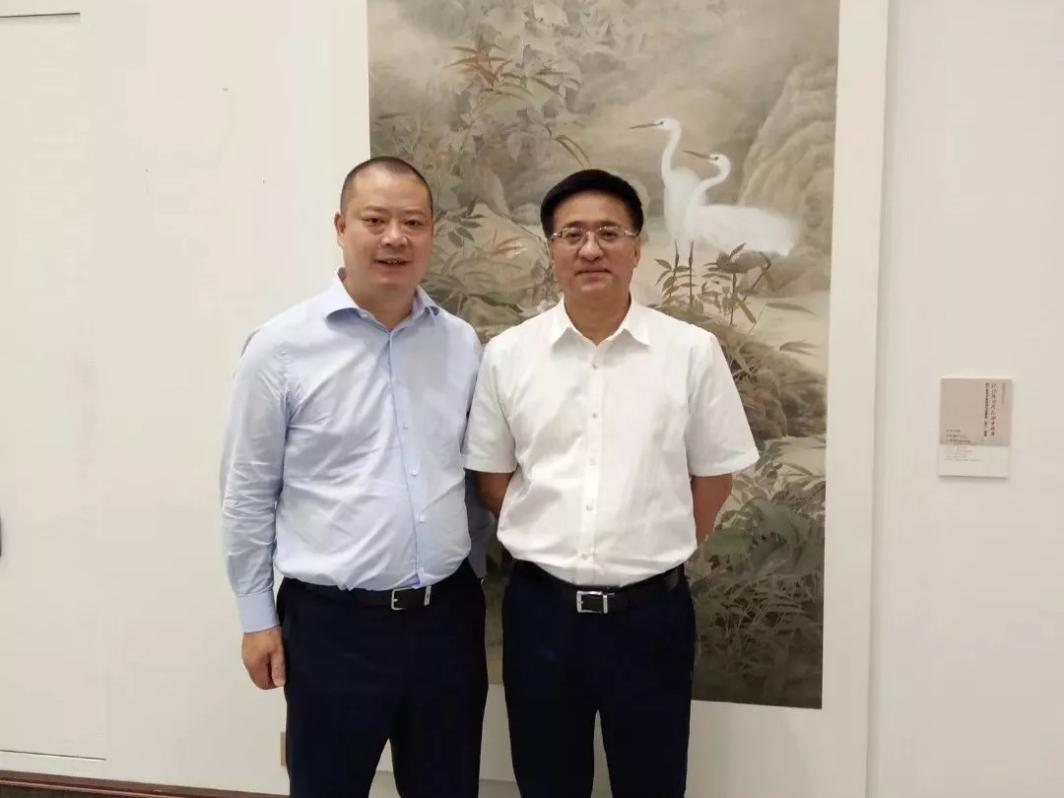 时任四川省文化厅厅长,现任四川音乐学院成都美术学院院长周思源与朗佑控股董事长、朗佑堂创始人何勇合影留念