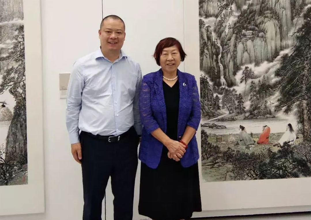 原四川省政协副主席、四川省诗书画院院长秦玉琴与朗佑控股董事长、朗佑堂创始人何勇合影