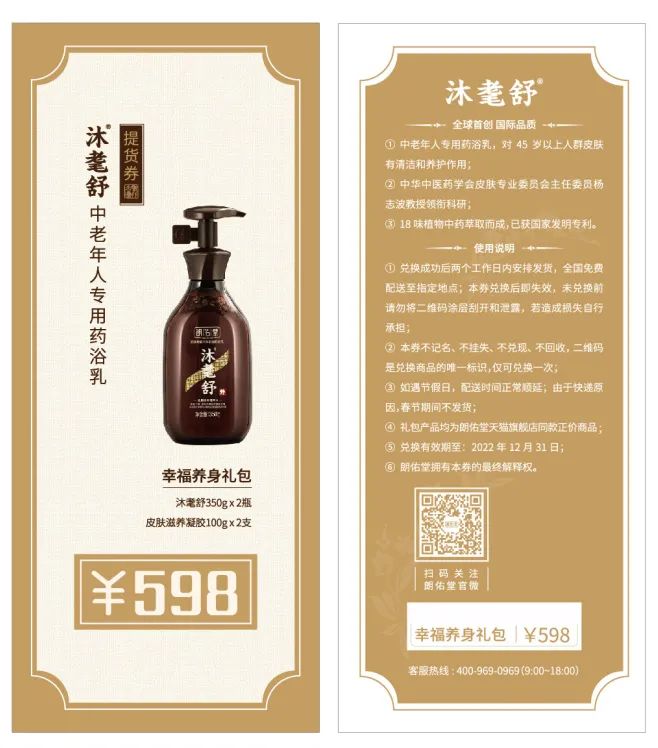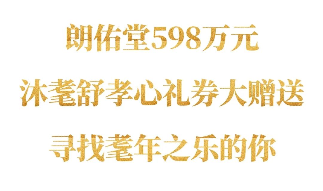 孝行大道—让天下父母幸福,是沐耄舒研发的初心和秉承的使命。重阳节来临之际,朗佑堂精心准备了致敬全国中老年人的礼物—— 10000份价值598元的沐耄舒孝心礼券,只为让中老年人舒心地洗个澡,提升生活品质。
