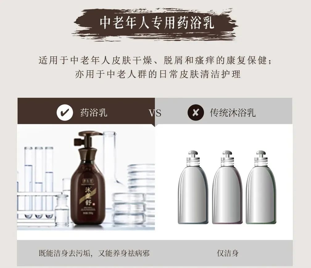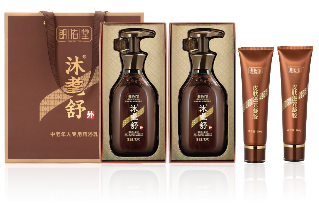 朗佑堂出品的沐耄舒,是中老年人专用药浴乳,中华中医药学会皮肤分会主委杨志波教授领衔科研,已获国家发明专利。